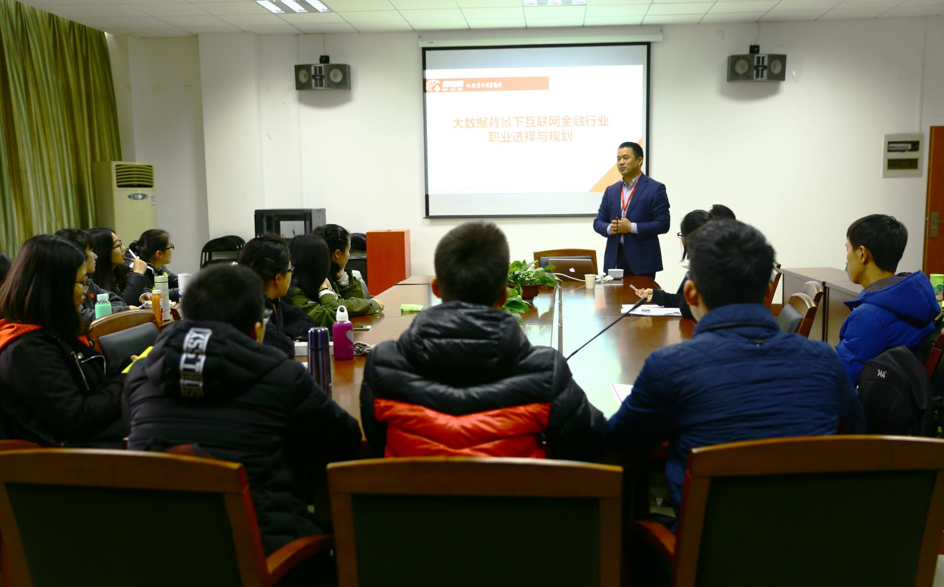 313室如期举行,本期嘉宾是浙江新同花顺网络信息股份有限公司销售总监、高校与政府事业部总监张晓伟先生。本期主题是大数据背景下互联网金融行业的职业选择与规划,张晓伟先生以多年金融从业经验和当前行业发展角度,分享了他的对大数据背景下互联网金融行业的人才需求的看法和他的一些人生见解,给同学们的职业选择与规划提出了很好的建议。