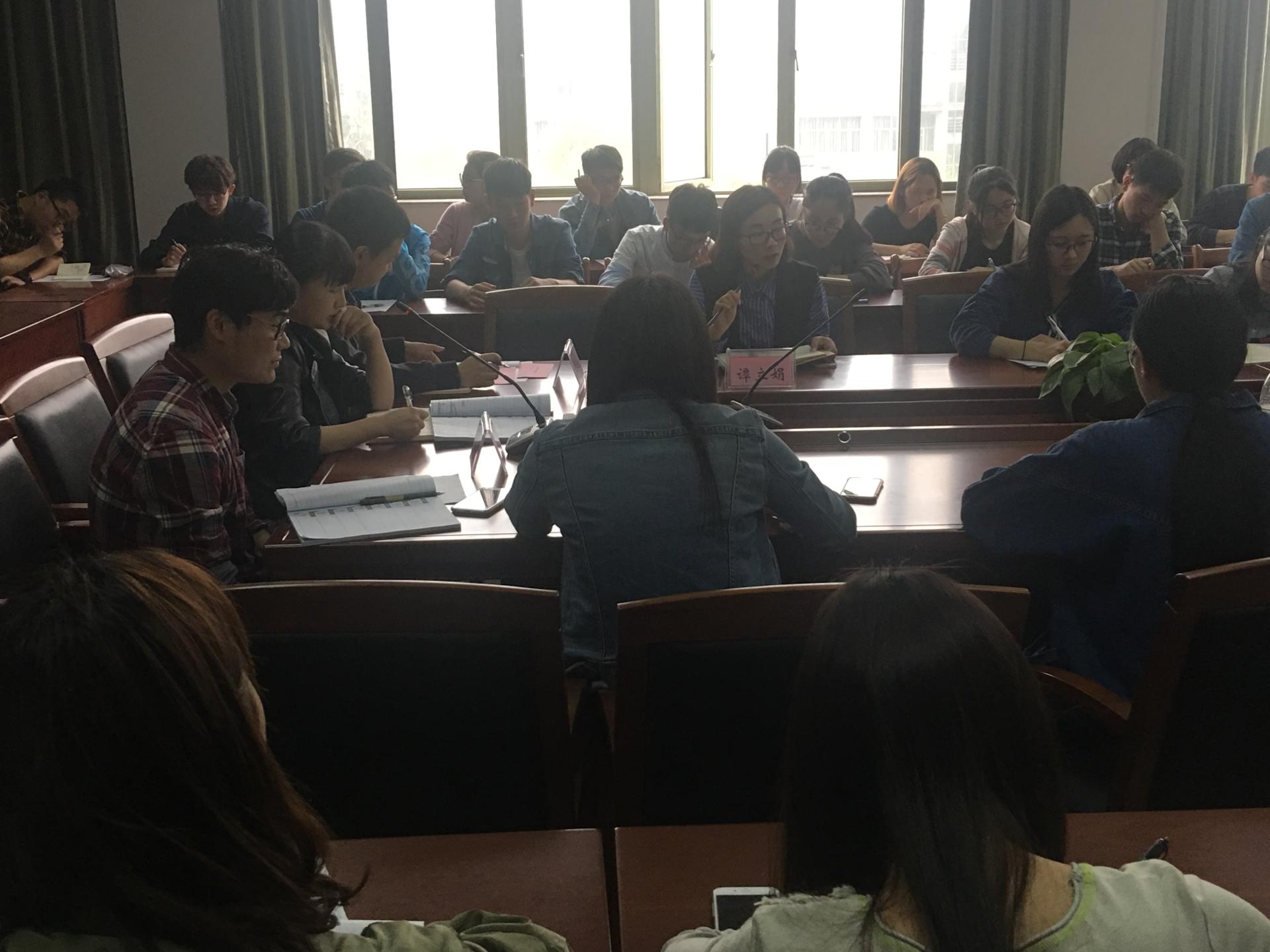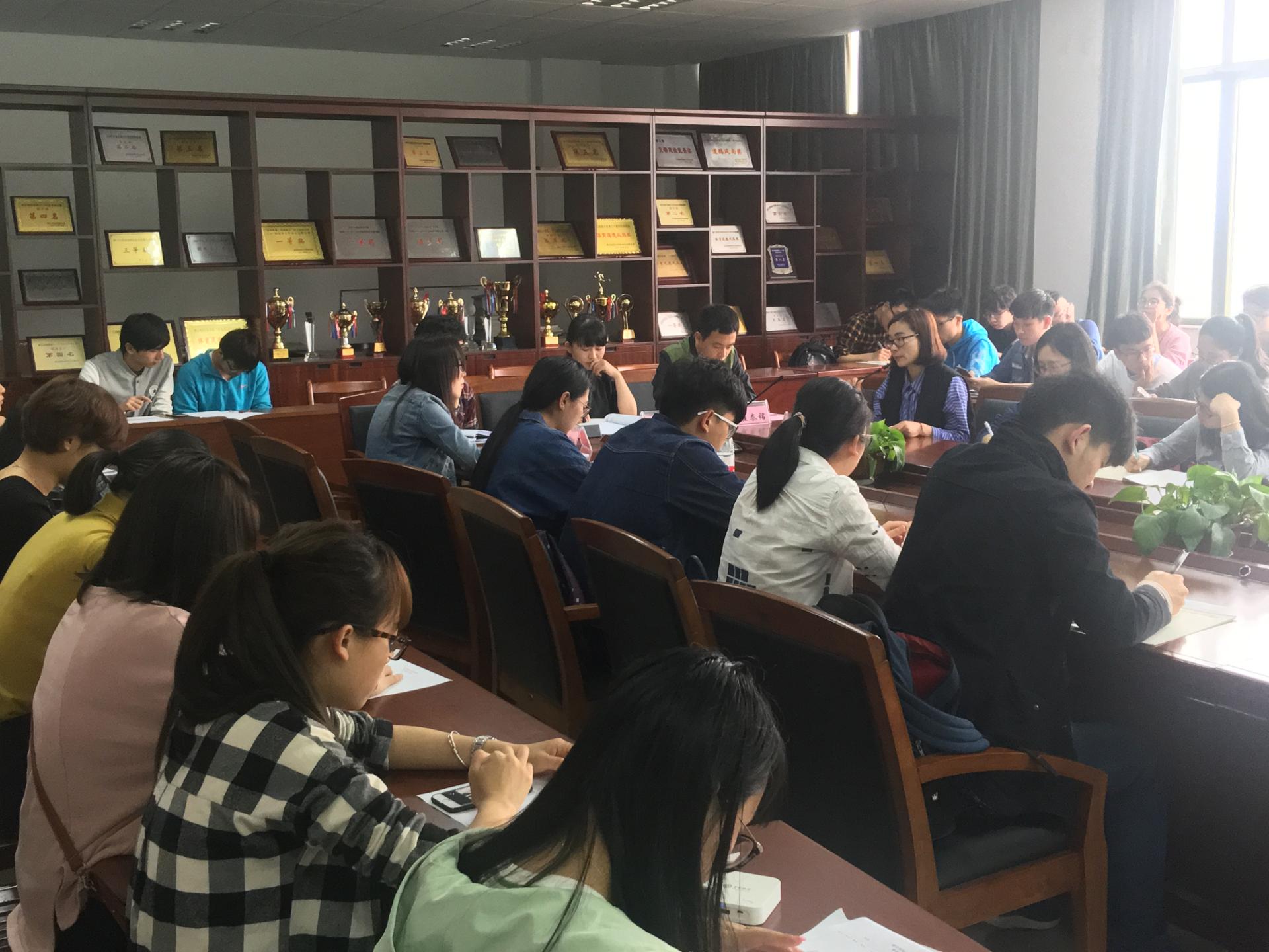 楼313会议室举办,院党委副书记杨小恩,学办主任崔泰铭,团委书记费伟平,辅导员谭立娟、李伶俐及各班班长团支书参加。