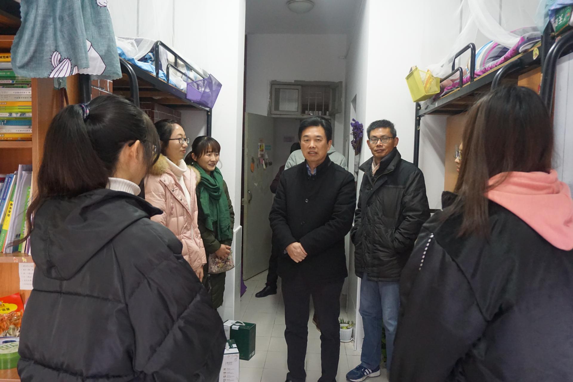 党委书记沈书法、副书记杨小恩、辅导员李伶俐、曹仲晔的陪同下走访了学生生活园区5幢416寝室。