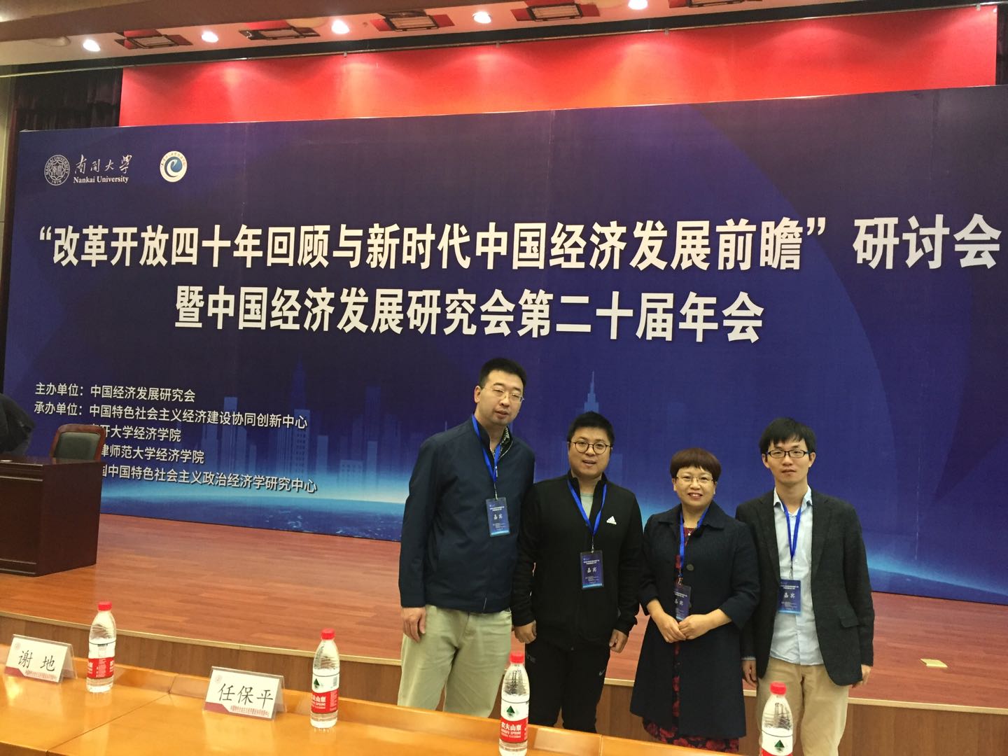 共同承办的“改革开放四十年回顾与新时代中国经济发展前瞻”研讨会暨中国经济发展研究会第二十届年会在天津南开大学召开。本届年会主题是改革开放四十年回顾与新时代中国经济发展前瞻。来自中国人民大学、南开大学、复旦大学、武汉大学、南京大学、北京师范大学、山东大学、辽宁大学和浙江财经大学等高校与科研院所的130多位专家学者围绕“中国特色社会主义经济理论的创新与发展”“高质量发展的内涵和实现途径”“改革开放四十年经济发展理论创新与实践成就”等议题展开了深入探讨与交流。