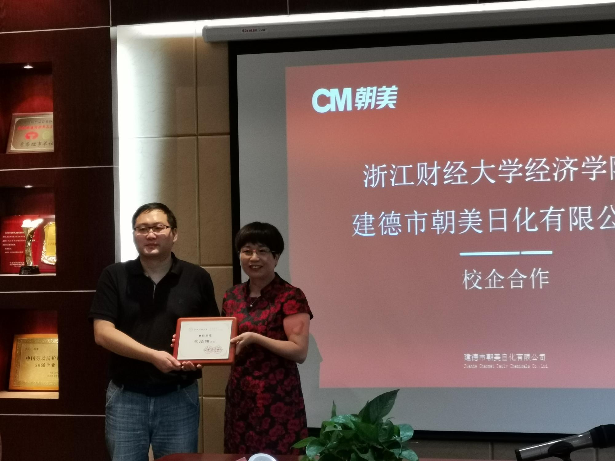 随后,胡亦琴院长为建德朝美日化总经理林焰伟颁发兼职教授和创业导师聘书,共同为“澳门六合彩app下载