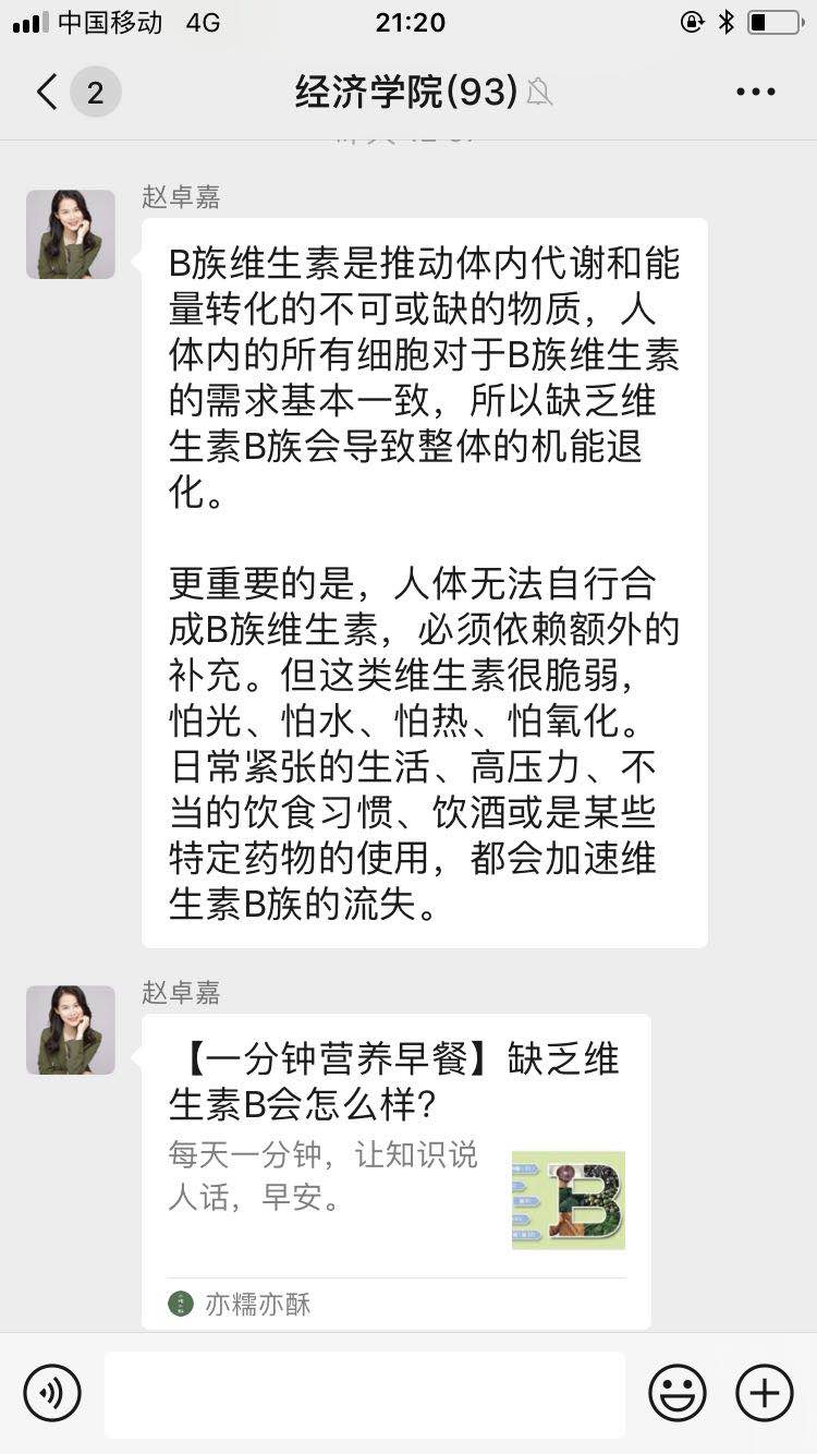 教职工微信群内持续开展“每天一分钟”的医学营养学知识分享,在疫情蔓延的情况下,为澳门六合彩app