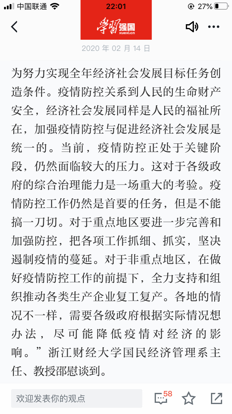 在疫情当下,教工第一支部党员邵慰教授充分发挥学科优势,积极建言献策,在人民网文章《工作越吃劲越要毫不放松 习近平强调抓实抓细抓落地》中指出“加强疫情防控与促进经济社会发展是统一的”,为社会各界疫情防控及完善相关政策提供参考。随着学校正式线上开课,澳门六合彩app