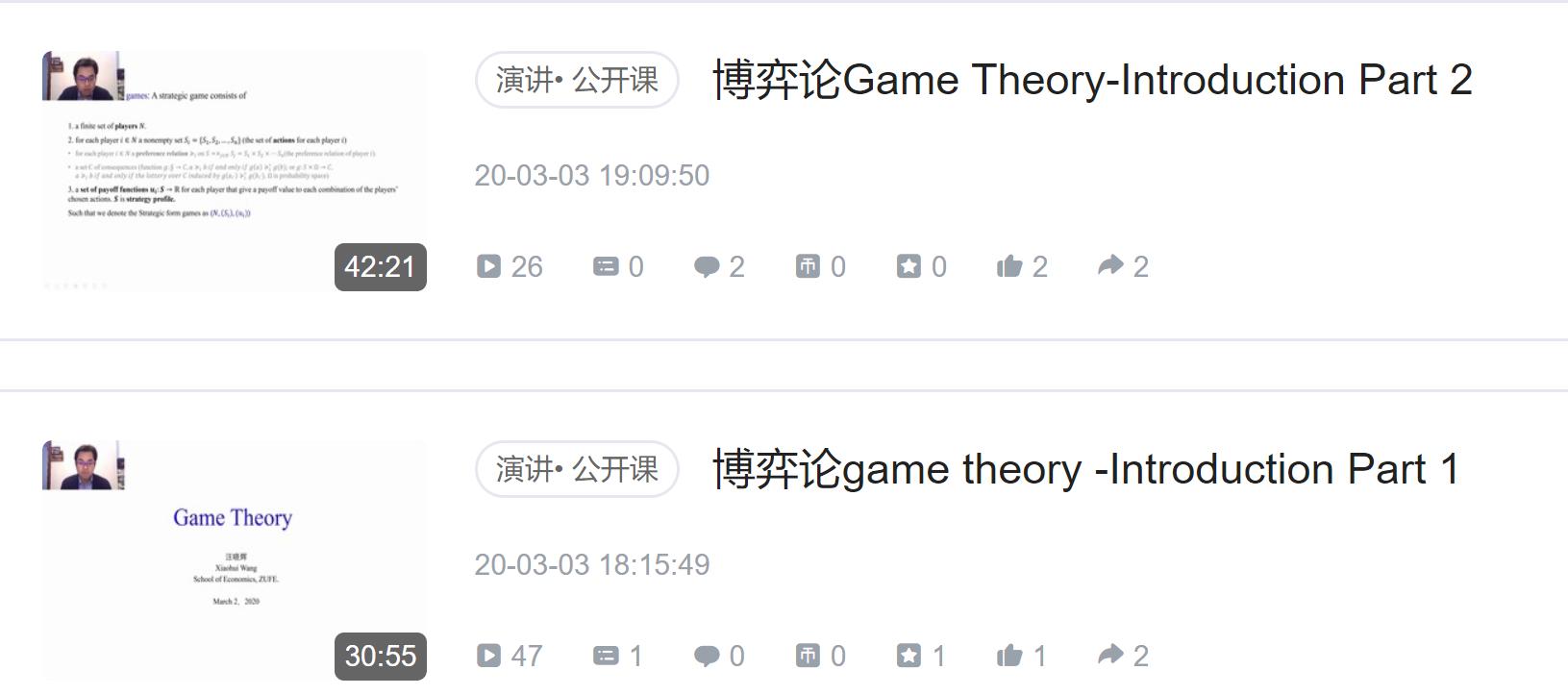 而《博弈论(双语)》是针对已经有相当经济学专业基础的大三学生,所以涉及较多的模型推导与解析,因此在线上讲授的过程中,辅以电子板书形式,让同学对模型的细节能有更深的体会。