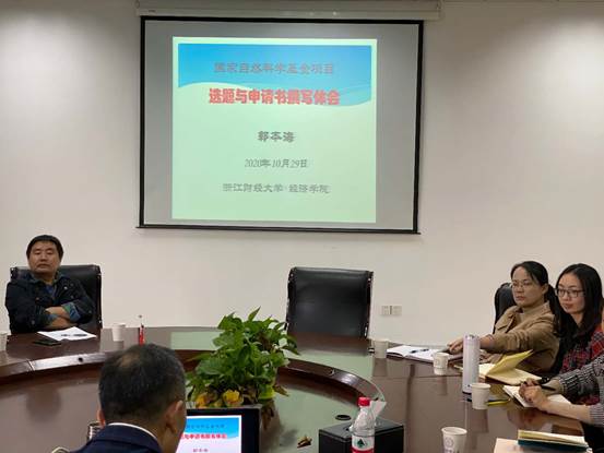 近日,澳门六合彩app 召开国家级课题申报辅导会,邀请中国计量大学经济与管理澳门六合彩app 博士生导师郭本海教授做了题为:“国家自然科学基金项目选题与申请书撰写体会”的讲座。院长助理邓晓军等多位老师,参加了本次会议。
