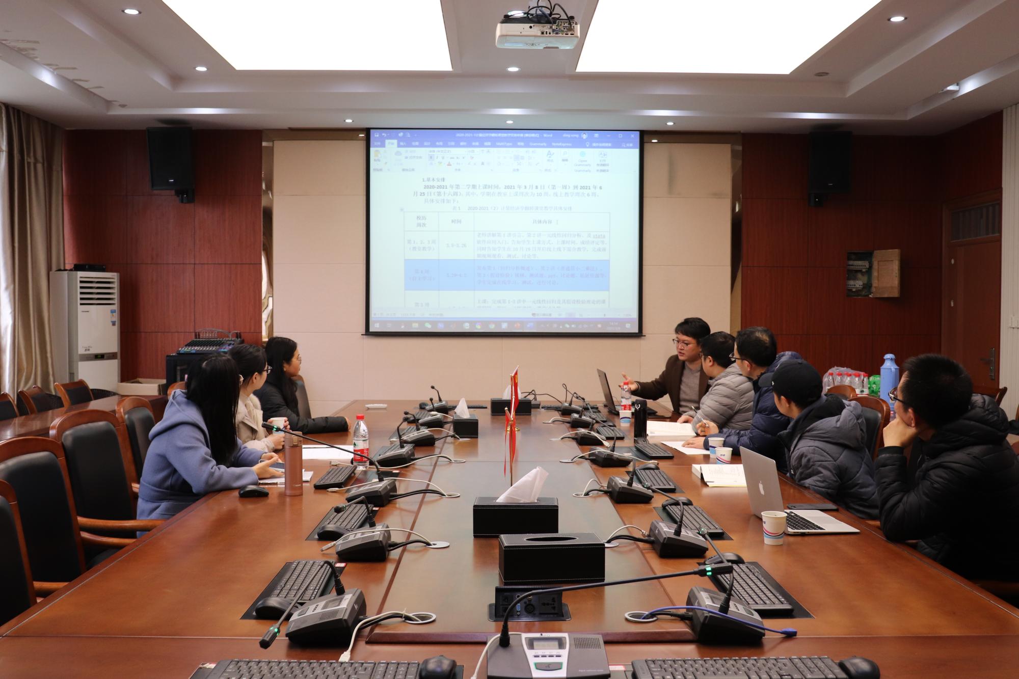 楼210成功举行了以“计量经济学线上线下混合教学探索”为主题的教研活动。本次活动由丁松老师主讲,马汴京、黄腾、王建英、苏卫良、罗娇娇、姜磊等教研室老师参加了此次研讨。