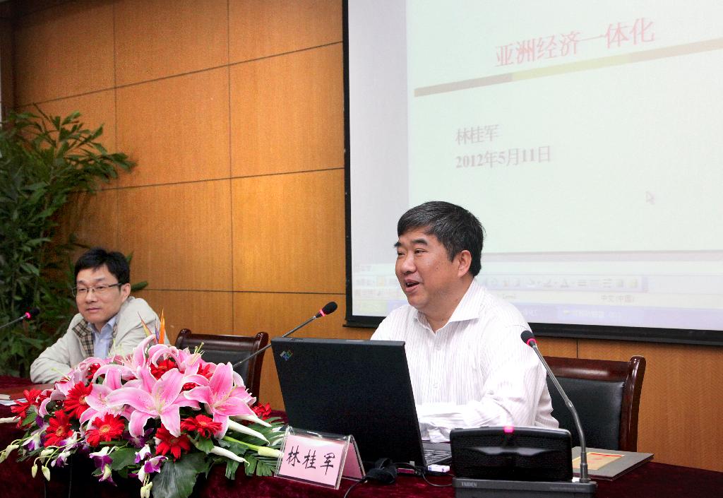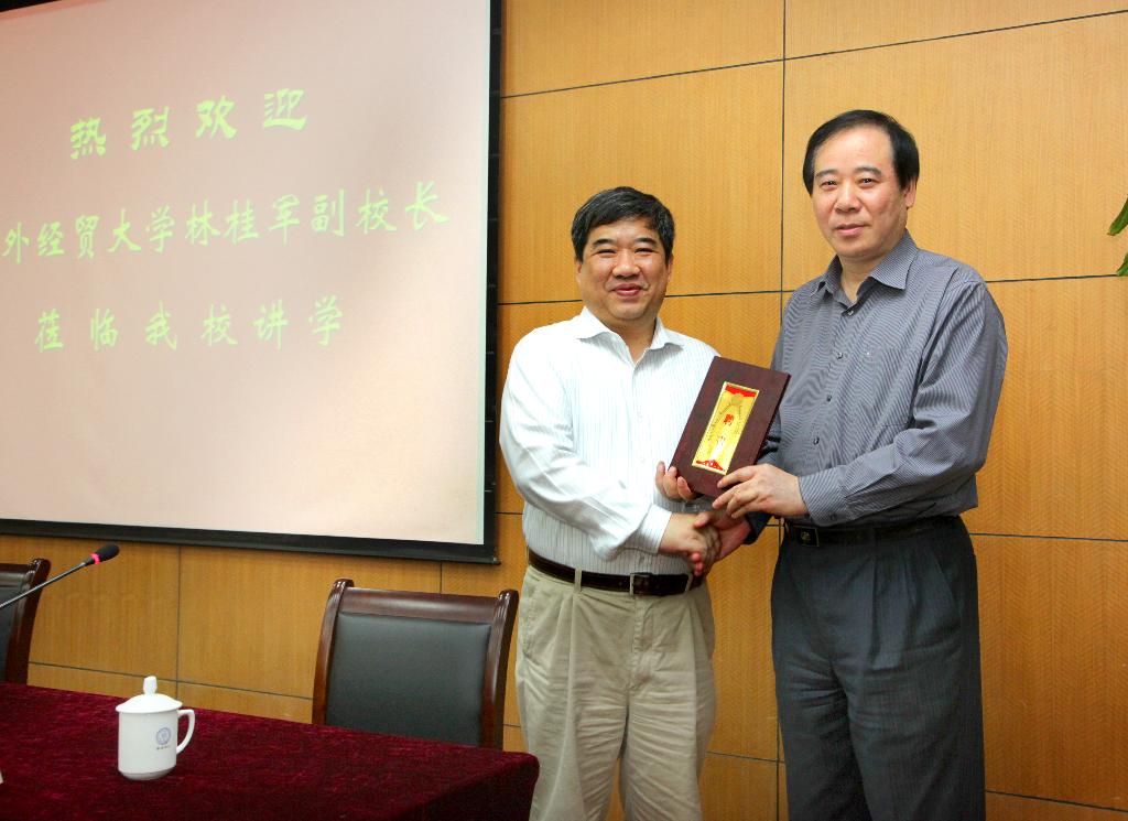师生作了题为“亚洲经济一体化分析”的学术报告。王俊豪院长代表学校向林桂军教授颁发了聘书。