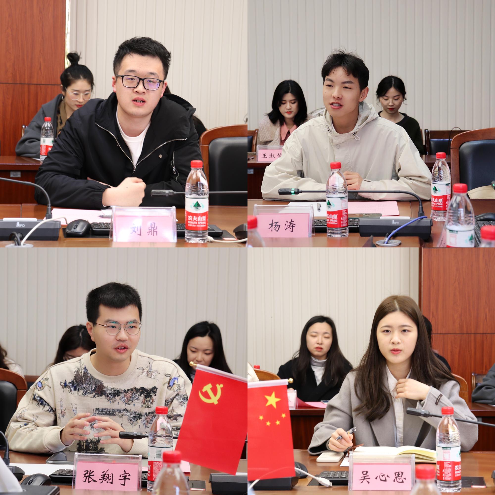 院长王正新、党副委书记崔泰铭、团委书记曹仲晔以及辅导员韦罗成、俞一献、陈秋涵出席会议,14名硕士毕业生代表参加会议。
