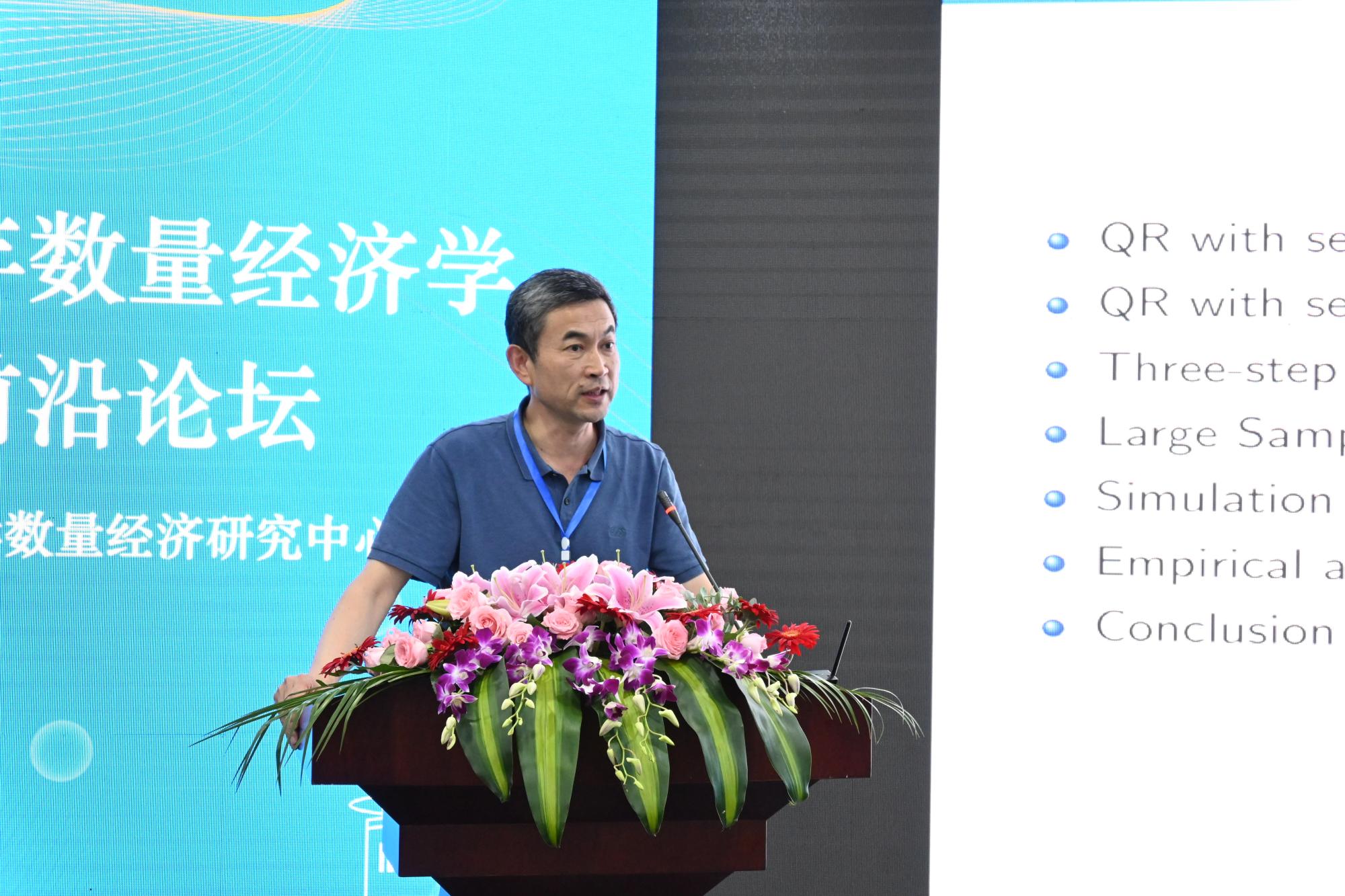 首都经济贸易大学李鲲鹏教授、华中科技大学杨继生教授、厦门大学陈海强教授、上海财经大学张征宇教授、西南大学喻开志教授、厦门大学吴吉林教授等六位嘉宾分别围绕“A Spatial Panel Quantile Model with Unobserved Heterogeneity”、“复杂冲击背景下中国制造业外部市场的趋势演变”、“中国城镇居民跨城消费的空间分布及影响因素”、“读大学是否适合所有人”、“Time-Varying Random Coefficient Model for Integer-Value Time Series via the Poisson Thinning Operator”、“Testing for Trend Specifications in Panel Data Models”等主题作了学术报告。