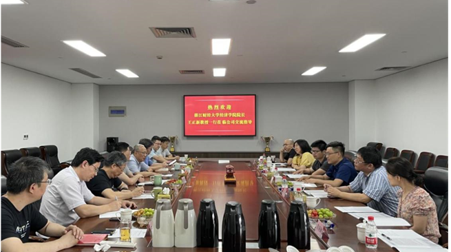 院长王正新带队赴浙江杭钢国贸有限公司开展校企合作调研,院长助理邓晓军、国际贸易系主任吴宏、金星、郭志芳、范彦成、蔡婉琳等老师参加调研交流。