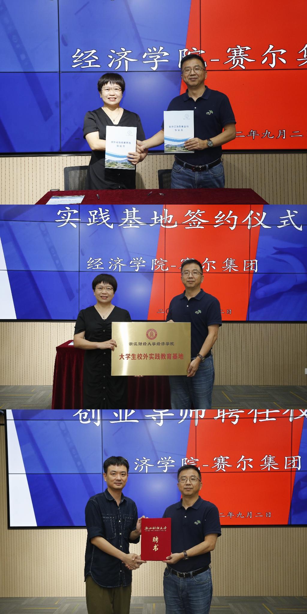 与宁波赛尔集团举行实践基地签约授牌仪式暨首届“赛尔外贸实战特训营”结营仪式。宁波赛尔集团副总裁方永强、招聘经理蒋丽妮、澳门六合彩app