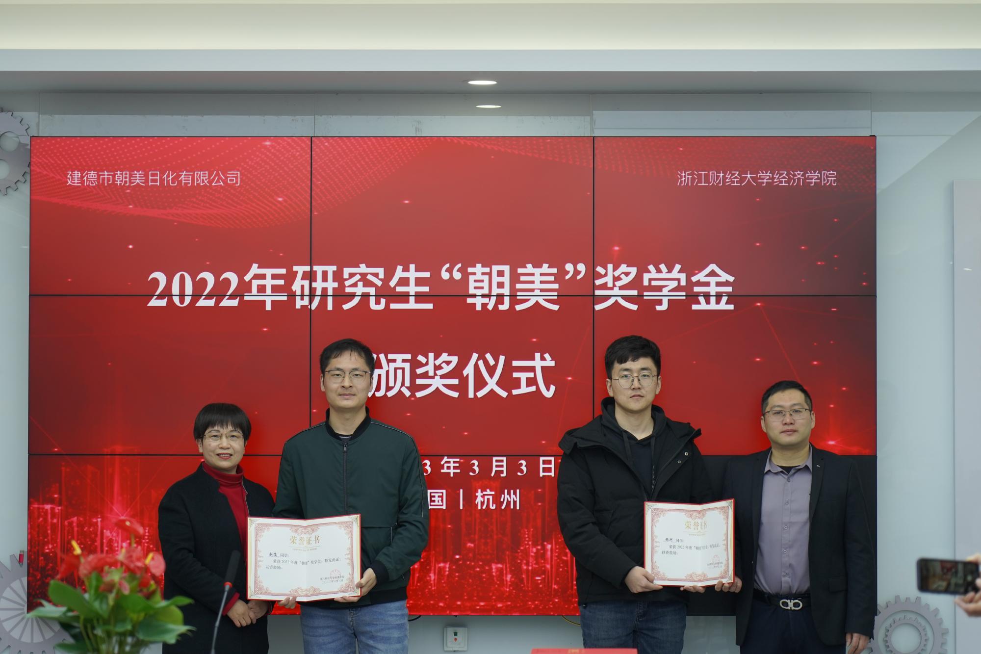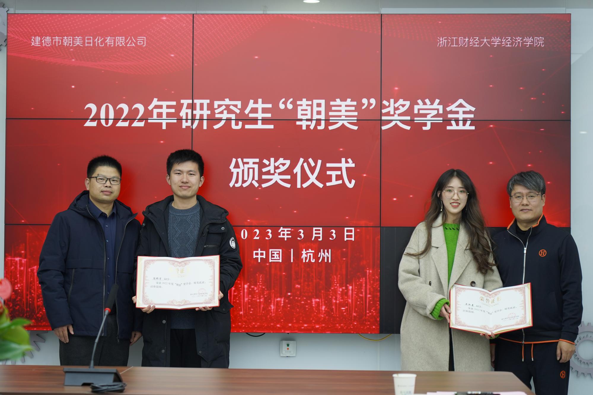 3月3日下午,首届研究生“朝美”奖学金颁奖仪式在建德市朝美日化有限公司举行。公司总经理、澳门六合彩app