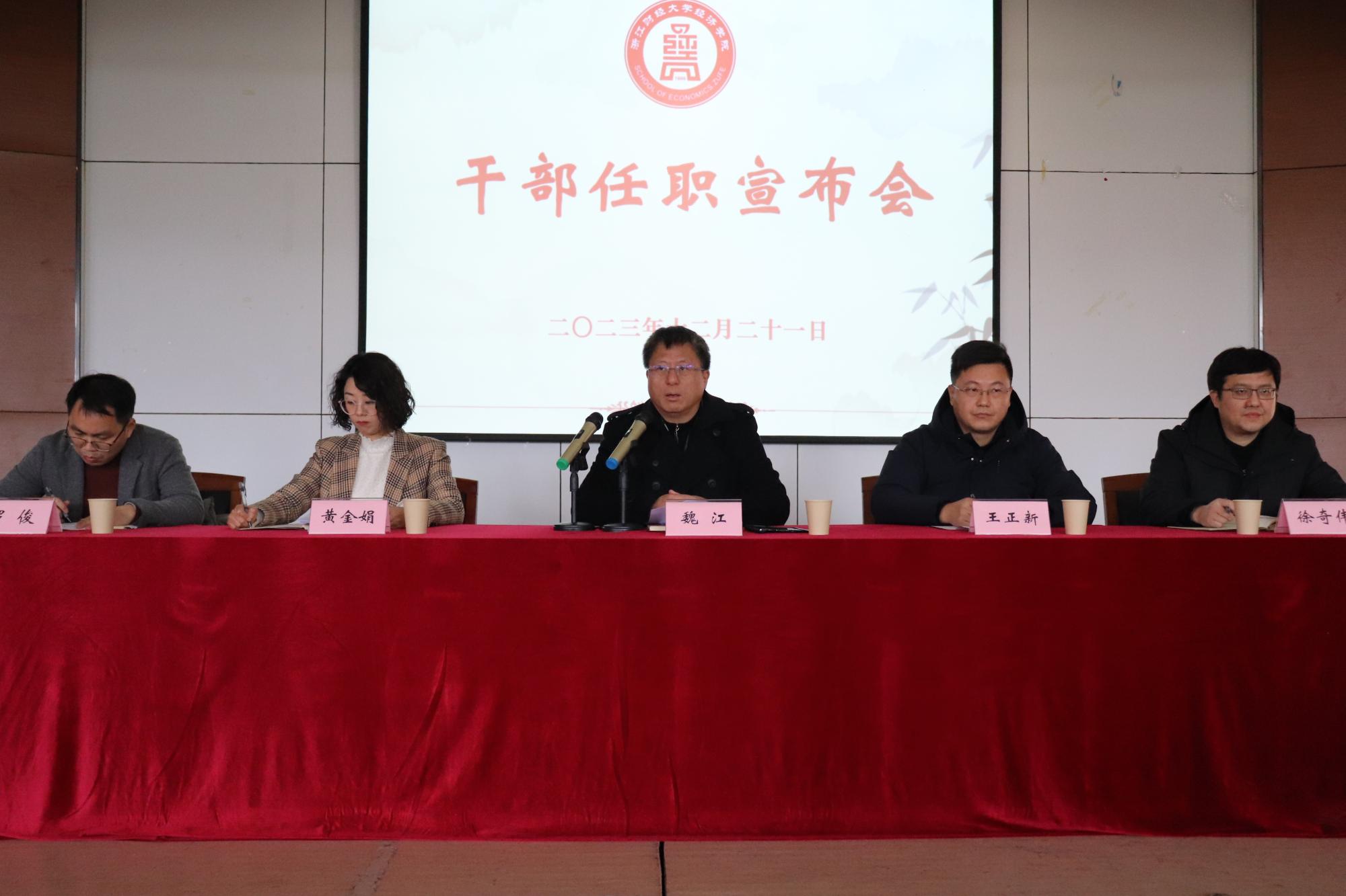 召开党政正职任职宣布大会。校党委副书记、副校长(主持行政工作)魏江、校党委组织部副部长黄金娟出席会议,澳门六合彩app