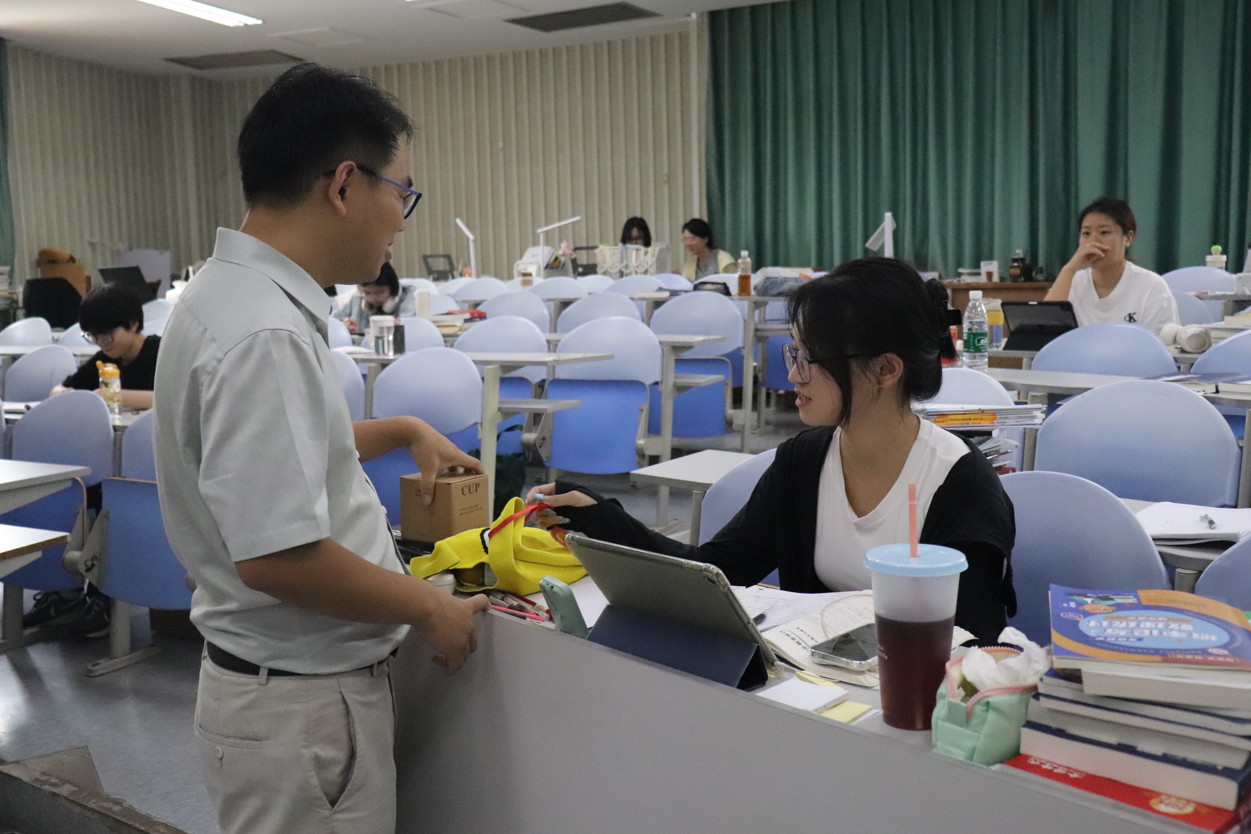 随后,院领导们亲自为每位考生送上了精心准备的“考研大礼包”,其中包括遮阳伞、小风扇、加油杯等,为学子们在炎炎夏日中送去一份清凉与祝福。一件件暖心的礼物,一句句真挚的祝福,充分体现出对考研学子的重视与关怀。