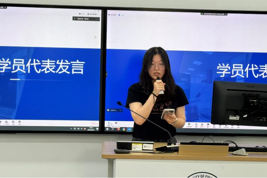 随后,党委副书记徐丽玲、副院长邓晓军分别为优秀学员、结业学员代表颁发证书。优秀学生代表王颖发表讲话,真诚分享课程收获和成长,感谢澳门六合彩app