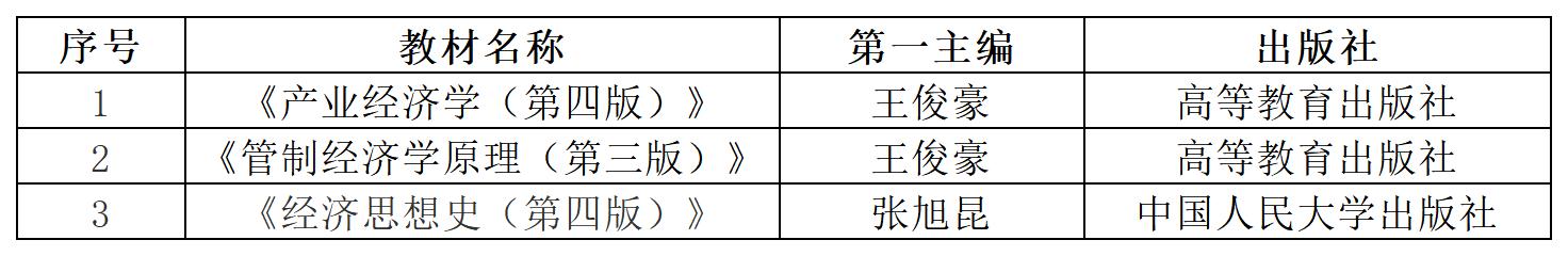 王俊豪教授的《产业经济学(第四版)》、《管制经济学原理(第三版)》和张旭昆教授的《经济思想史(第四版)》获评“十四五”省级规划教材。其中,王俊豪教授的《产业经济学(第四版)》、张旭昆教授的《经济思想史(第四版)》获推荐申报“十四五”国家级规划教材。