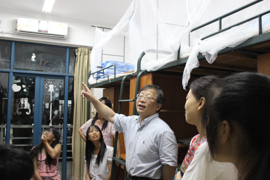 党总支副书记叶秀及团委书记汪风易老师走访了新生寝室19幢613室。老师们就军训、学习、生活以及对未来的展望等方面和四位新生进行了亲切的交流。