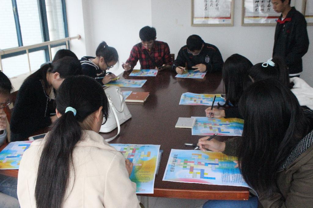 此次活动率先推出的是学术连连看和经济名词填词比赛,活动当天,气氛热烈。学术连连看要求参赛选手将书本知识融入到游戏当中,这种新颖的形式吸引了不少目光,许多路过的同学纷纷现场报名参加到游戏当中。“这次我看到了好多遗忘的概念和著作,回去要好好复习一下了。”现场的参赛选手这样说道。第二轮的经济名词填空游戏则在5号楼活动室里举行。活动形式受传统填词游戏的启发,设置横行、竖行的经济名词提示,以名词接龙的方式考察了同学们对专业名词的掌握情况。“这一轮游戏让我回顾了好几十个专业名词,从大一到大二的基本上都涉及到了。”现场一位参赛选手这样感慨道。