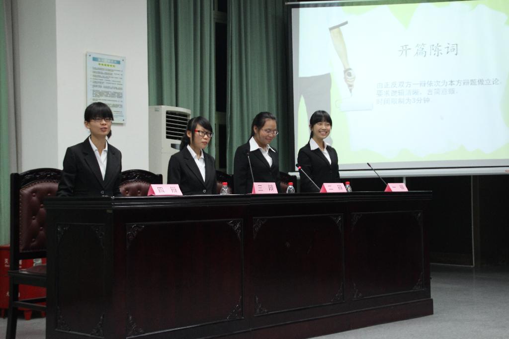 本场辩论赛的主题是“中国监督权是否应该下放”。正方13国贸一班,支持中国监督权下放,13国民经济则持相反意见。在双方辩手简单的自我介绍之后,比赛正式拉开帷幕。“我方认为现阶段中国的监督权应该下放,因为……”正方一辩慷慨激昂,由政府和百姓两个层面切入,列举了中国监督权下放的必要性,精彩的陈词,带动了全场的气氛,鼓掌加油声连连。随后反方一辩的驳词也毫不示弱,从我国现行基本国情出发,层层剖析,条理清晰、证据充分,强有力地证明了己方的观点,精彩的发言同样赢得了热烈的掌声。在随后的攻辩环节,双方更是针锋相对、步步紧逼,无论哪方稍有疏忽,对手就立马抓住这个细小的漏洞进行追问,现场气氛迅速升温,达到白热化阶段。
