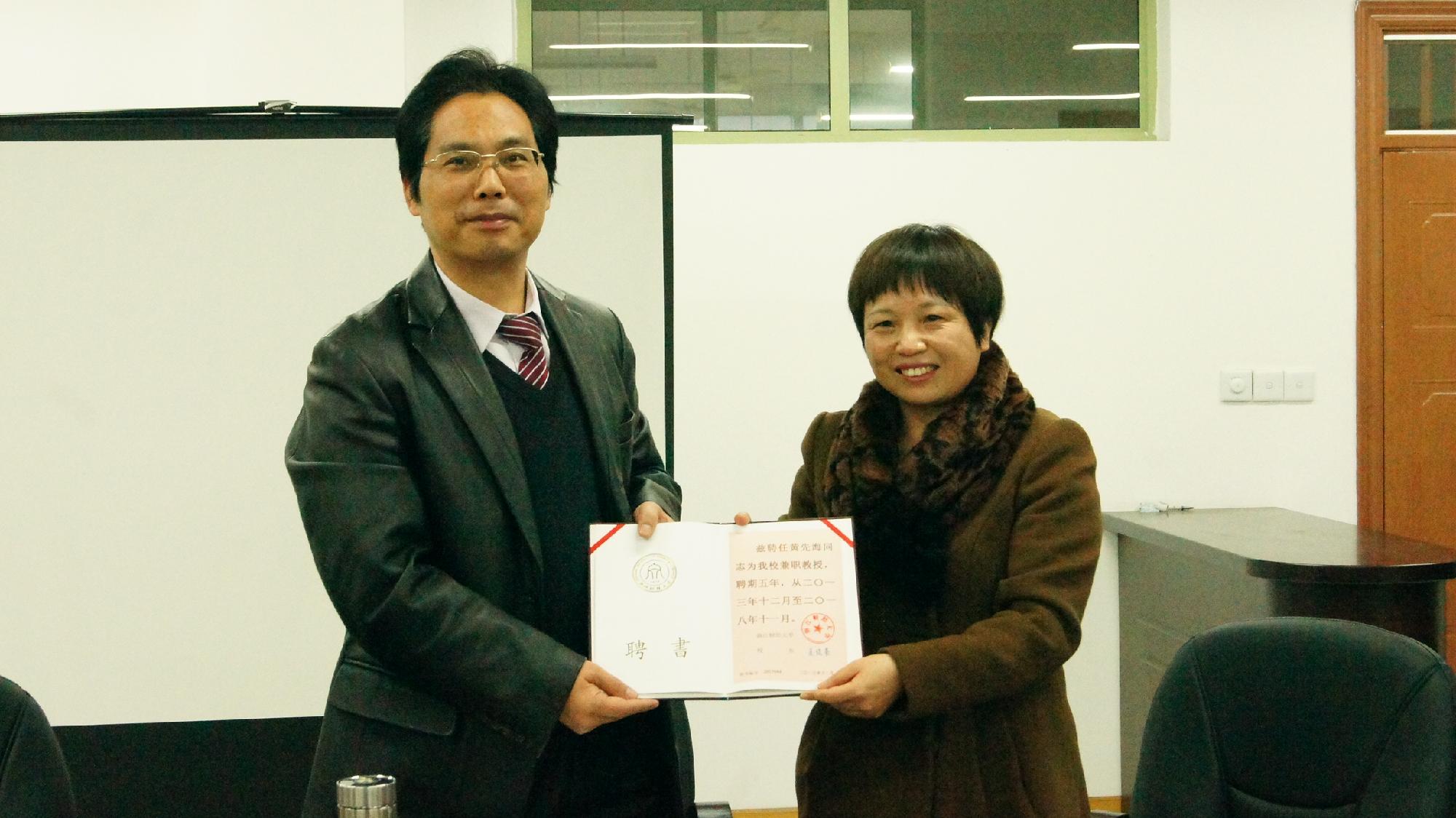 12月17日下午,浙江大学澳门六合彩app 常务副院长、浙江省国际贸易学会会长黄先海教授受聘为我校兼职教授,并在经贸澳门六合彩app 楼304室对澳门六合彩app 的学科发展进行指导,胡亦琴院长为黄先海教授颁发了聘任证书。