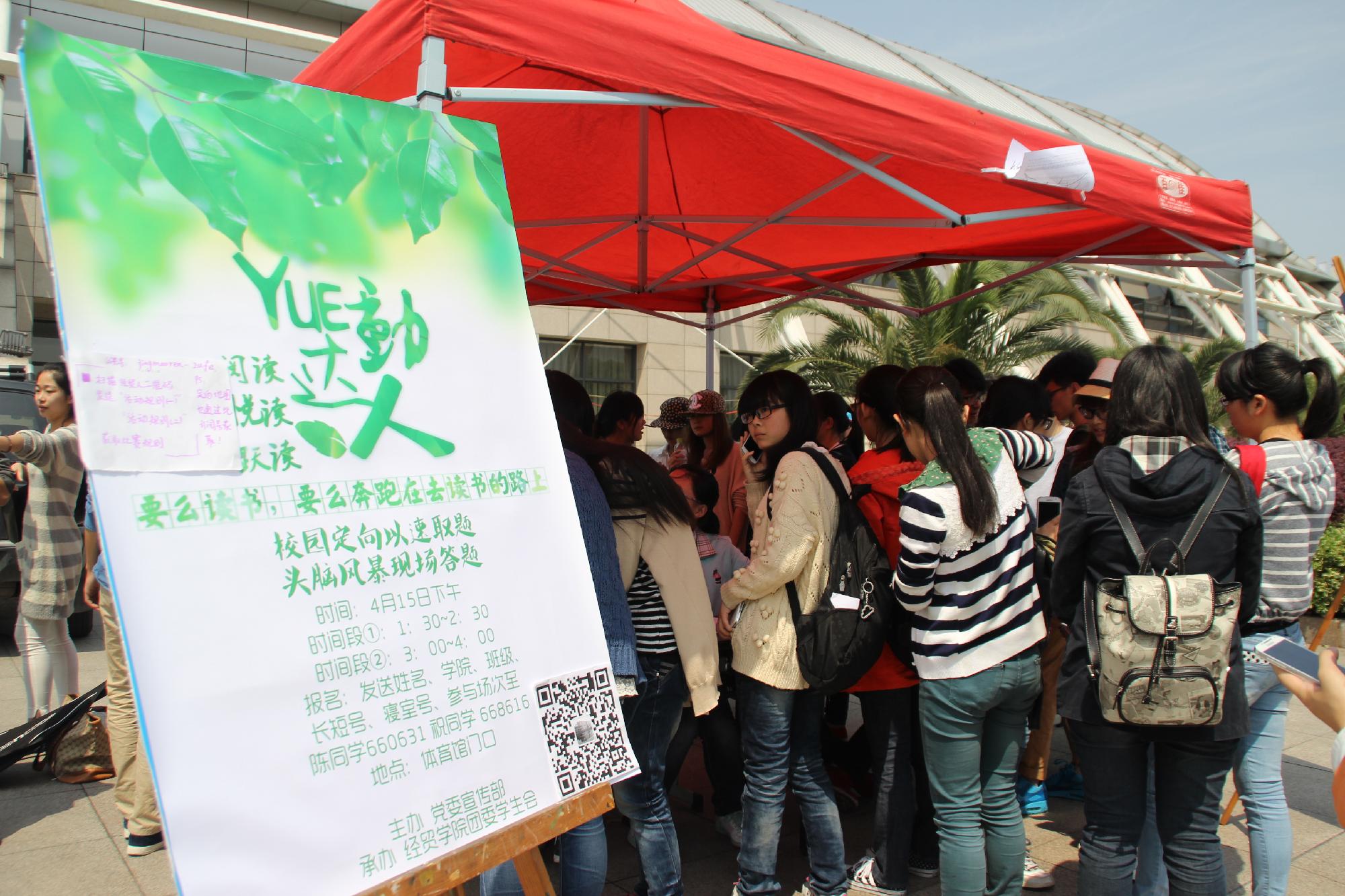 为了丰富同学们的课余生活,鼓励大家多读好书,广结良友,“YUE动达人”活动于4月15日下午在西体育馆门口火热举行。本次活动由浙江财经大学党委宣传部主办,经贸澳门六合彩app