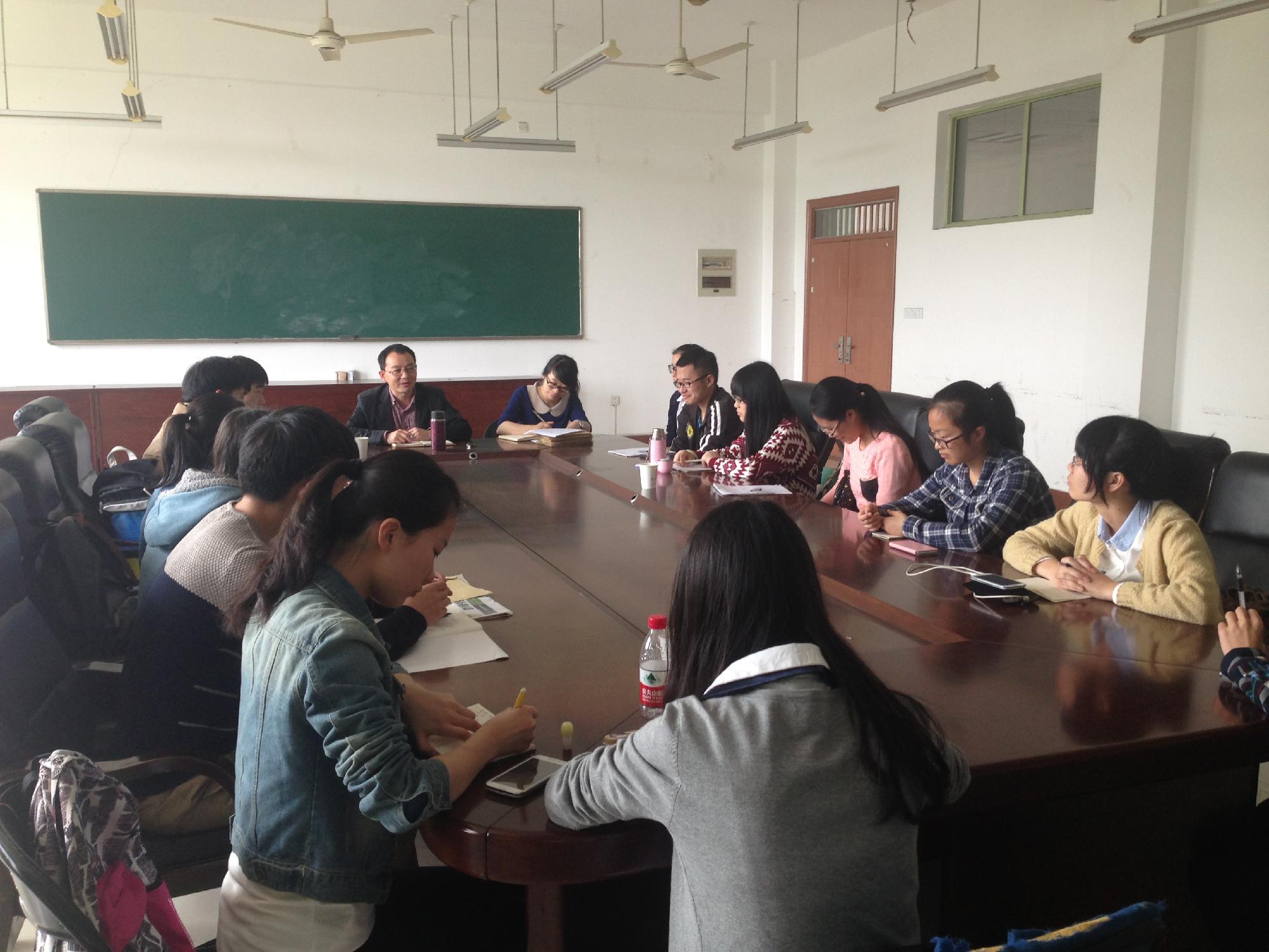 楼313会议室召开学习委员座谈会,柴志贤副院长主持会议,陈秀琴、高晓菁老师以及11-13级各班学生代表参加了座谈。
