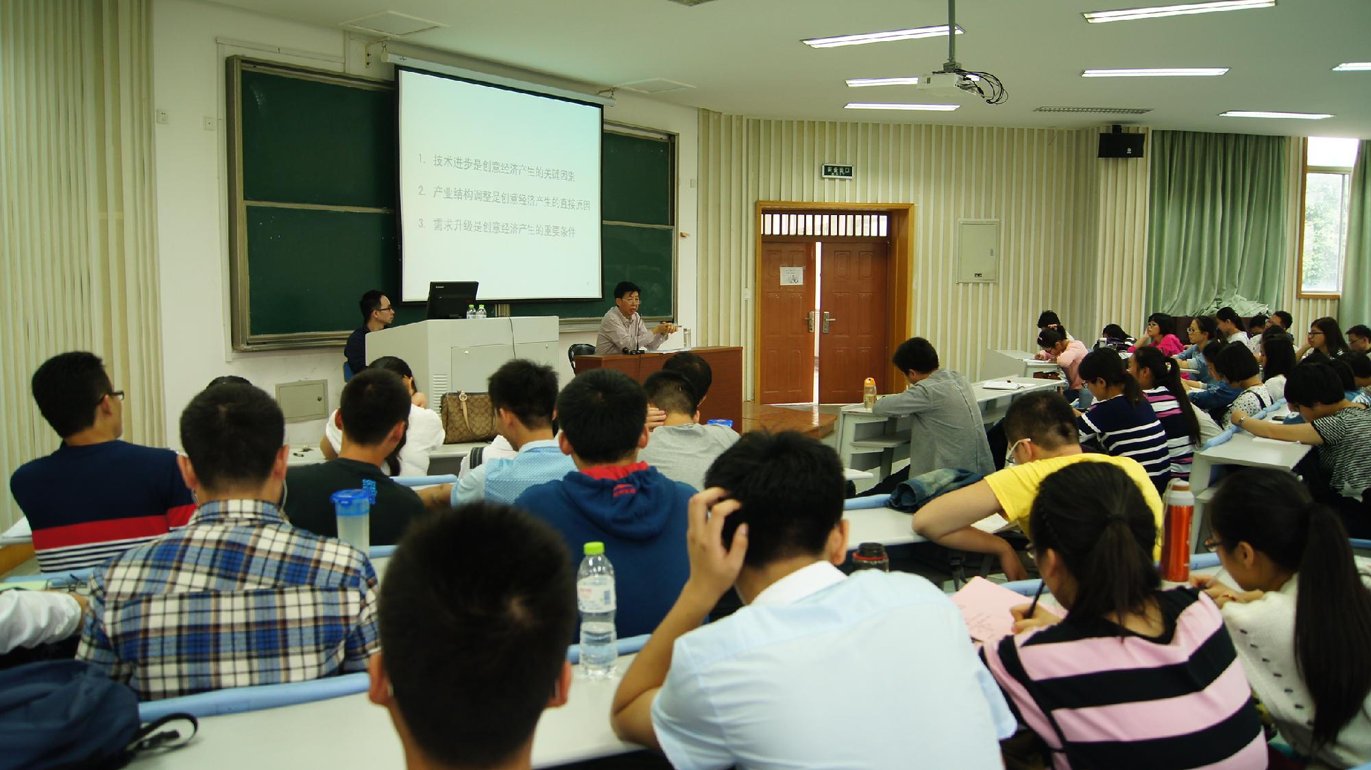 张国平老师围绕创意思维内涵、创意经济融合以及创意城市讨论三大主题展开。他首先以一系列实例向同学们阐述了“创意思维”的内涵,指出“创意思维本质上是一种意向思维,表象思维,形象思维”。随后张老师通过讲解创意经济的起源,分析创意经济的内涵,区分创意经济时代产业融合的类型,论述了创意经济时代产业融合对产业结构升级的影响,他认为创意经济时代产业的融合一方面能产生新型交融产业,另一方面也将提升传统产业附加值,并促进产业创新。最后,张国平老师与同学们就艺术之都——德国柏林的城市现象进行解读,提出打造一座创意城市,不仅需要来自政府、非盈利部门的支持,虚实创意平台的构建,还需要集庆活动的开展,大量年轻人的聚集以及多样性文化的发展。