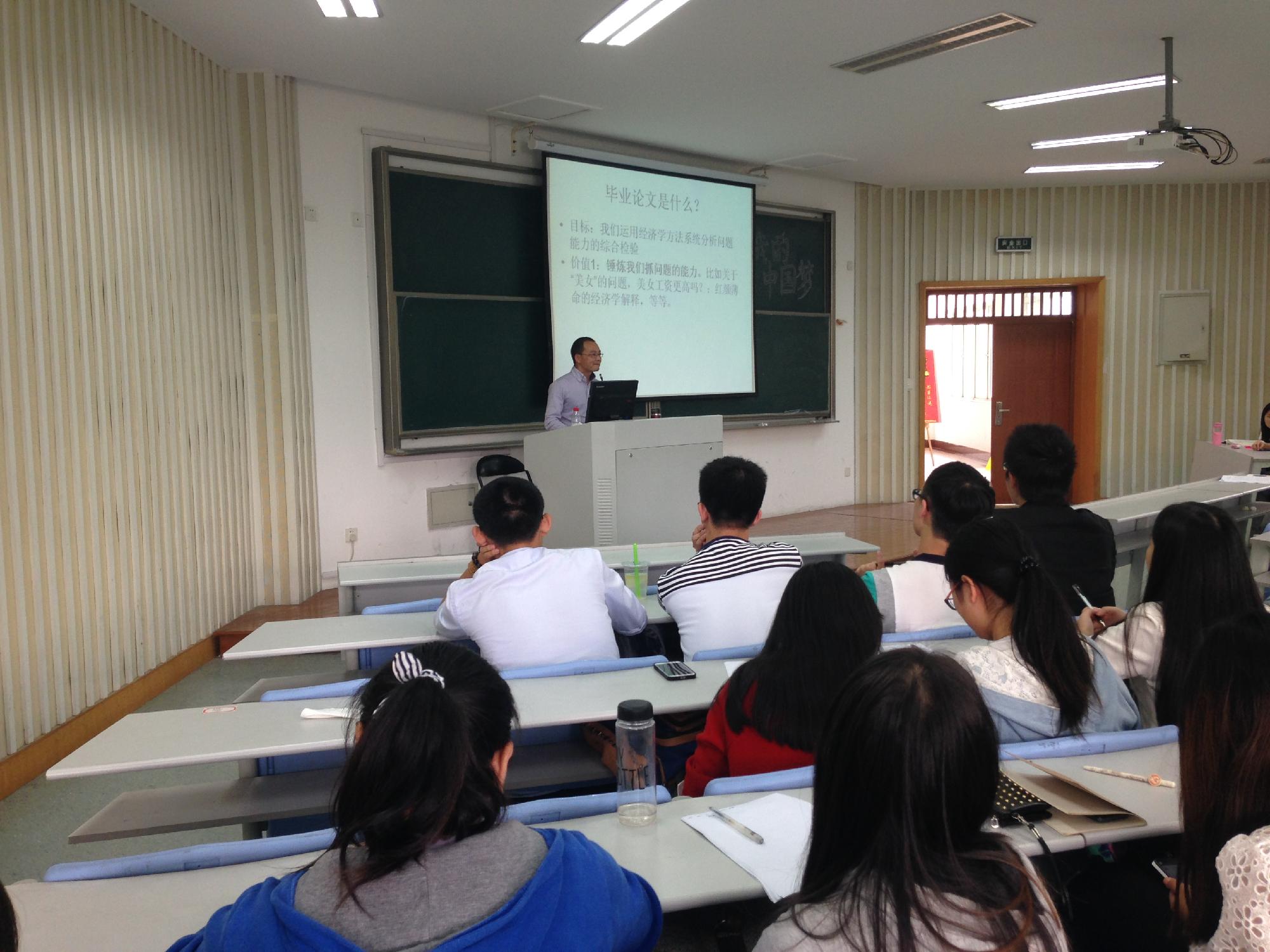 随后,柴老师详细阐述了毕业论文的重要性,就论文选题、开题、资料收集、语言表达等作了全面讲解,针对如何写好本科毕业论文提出了建设性的指导意见,并对论文写作的格式规范、内容要求进行了详细说明。