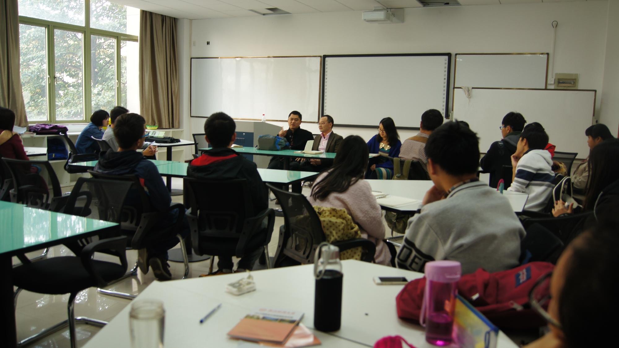 长柴志贤、实验班班主任李井奎、实验班辅导员谭立娟、教学办公室陈秀琴、高晓菁与14级实验班学生参加本次座谈会。