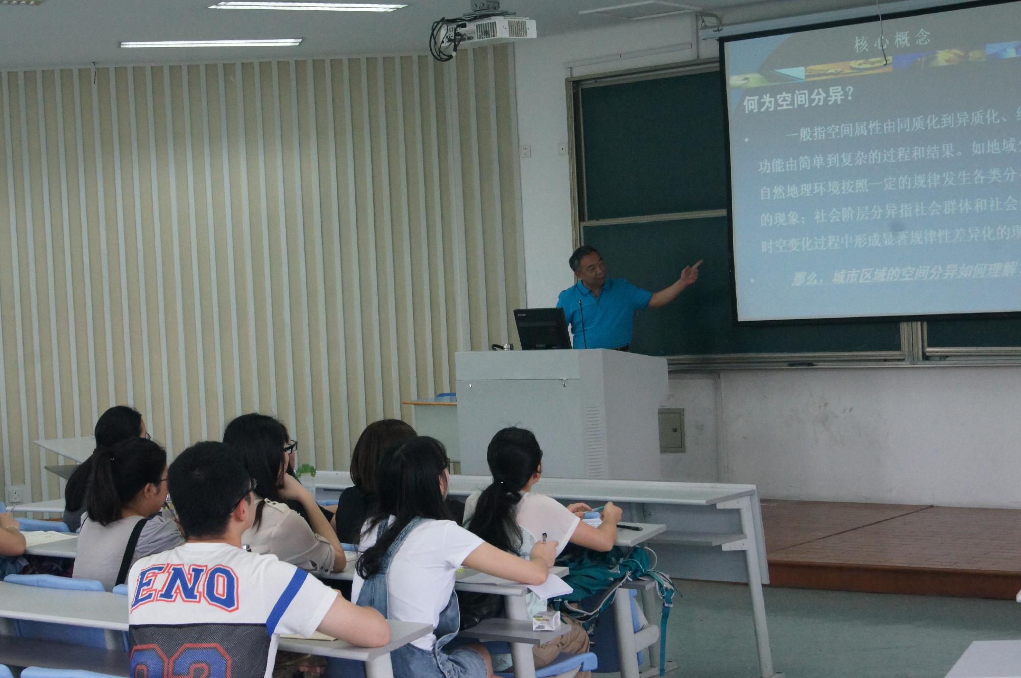 崔大树教授在区域科学研究方面理论造诣深厚,主讲的《城市地理学》、《区域经济学》、《经济地理学》等课程教学效果优异,广受学生好评,本次示范课,以本课程的核心内容“城市地域的空间分异”为例,首先从“城市群”、“都市圈”、“大都市带”几个城市空间分异的主要概念入手,系统分析和梳理了几个概念的异同,让学生充分认识和理解城市空间分异的主要特征和发展演进的规律;然后通过“长三角城市群”、“伦敦都市圈”的具体案例分析,引导学生运用所学概念方法,分析具体的空间现象;最后引出本领域当前研究的热点与前沿问题,激发学生归纳、发展和深化理论的兴趣。通过用理论分析实际问题,再以实际问题发展理论的主线,层层推进,展现了精深的学术水平和娴熟的课堂掌控能力。