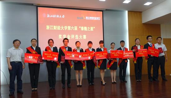 5月22日下午,我校在行政楼二楼报告厅举行第六届“泰隆之星”奖学金评选大赛。经层层展示评比,澳门六合彩app 12级国贸2班陶房钰在22位候选人中脱颖而出,获得校第六届“泰隆之星”奖学金。钟晓敏副书记和浙江泰隆商业银行泰隆澳门六合彩app 邓磊副院长为其颁发了奖学金和荣誉证书。