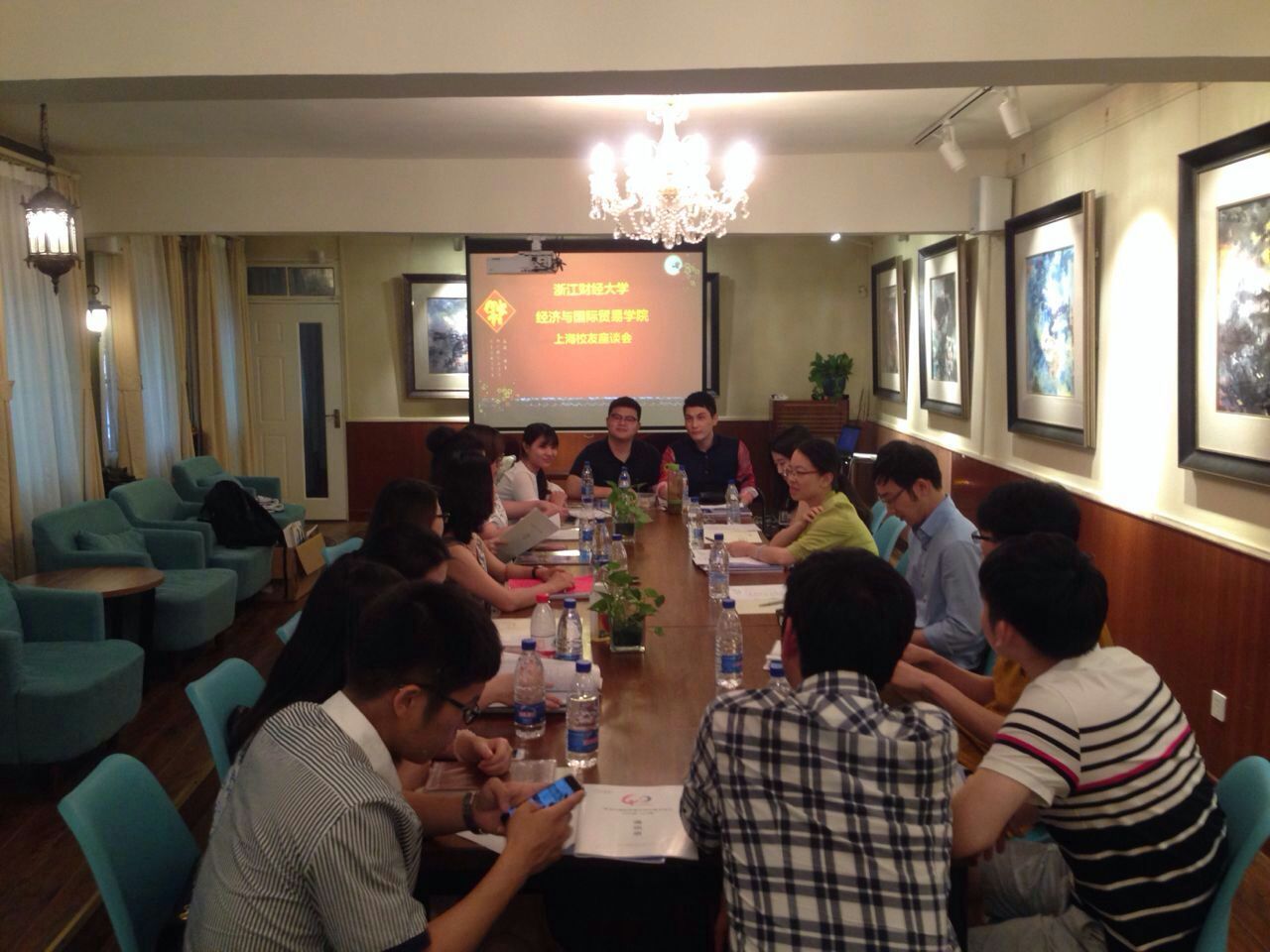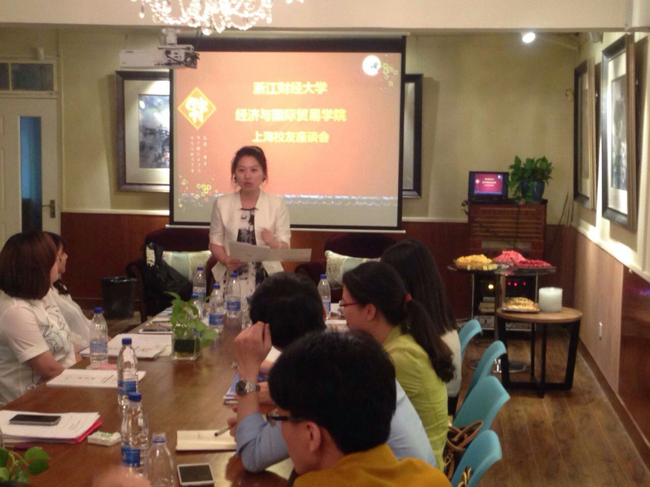 的崇高敬意与美好祝愿。11届校友,现任职兴业银行的胡丽娟表示,虽然离开母校多年,但一直感恩母校和老师对自己的培养,也时刻关心关注着母校的发展,为母校取得的每一项成就而高兴和自豪。10届校友,现任职于平安银行上海分行的卢骏则希望校友们加强联络,凝聚力量,尽快搭建起广大校友交流的平台,畅通校友与母校沟通的渠道。13届校友,就职于上海蓝天房屋装饰工程有限公司洪彤说“虽然毕业时间不长,但我还是常常怀念母校。每次去杭州出差,我总要抽空到母校走走,感觉特别亲切。”现就职于上海农商银行静安支行的05届校友黄伟伟代表校友们总结发言,也道出了所有校友的心声:大学四年是最美好的青春时光,在外打拼的校友更怀念在西子湖畔度过的岁月和当年的同窗情谊,更感恩于母校的培养,也希望能为母校的进一步发展贡献自己的力量。