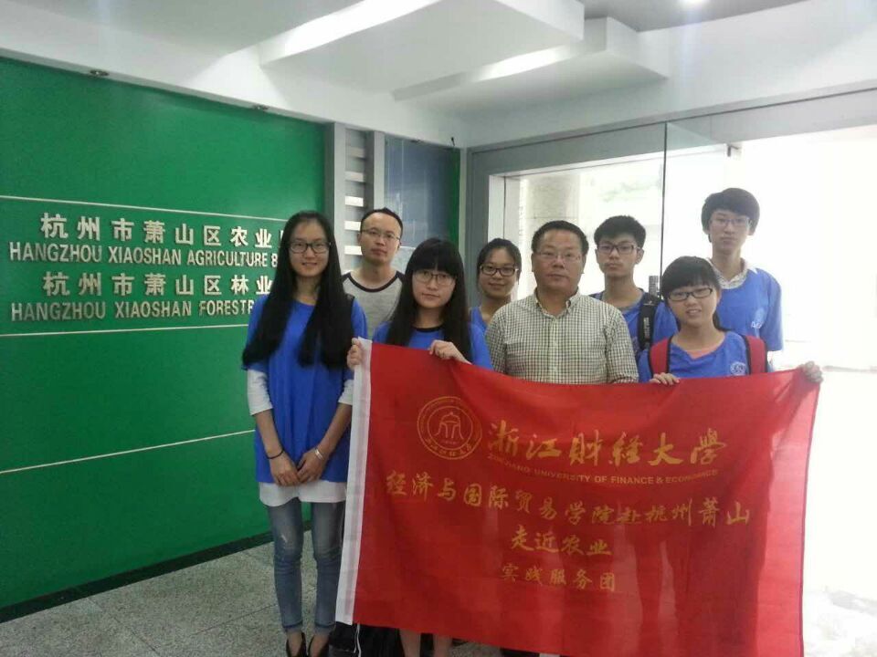 到达目的地之后,有关负责人王老师热情的接待了实践团。他详细的为大家介绍了萧山农业的基本情况,让同学们对萧山特色农业、创意营销模式以及未来发展等方面有了清晰的认识。随后,实践团就萧山农业今后的发展方向、发展形势等问题与王老师进行了热烈的讨论交流,整个谈话过程愉快而融洽,大家受益匪浅。特别值得感谢的是,当王老师了解到实践团此次活动目的后还主动推荐了合适的调查基地,并联系了当地的负责人。最后大家合影留念,并留了联系方式以便日后交流。