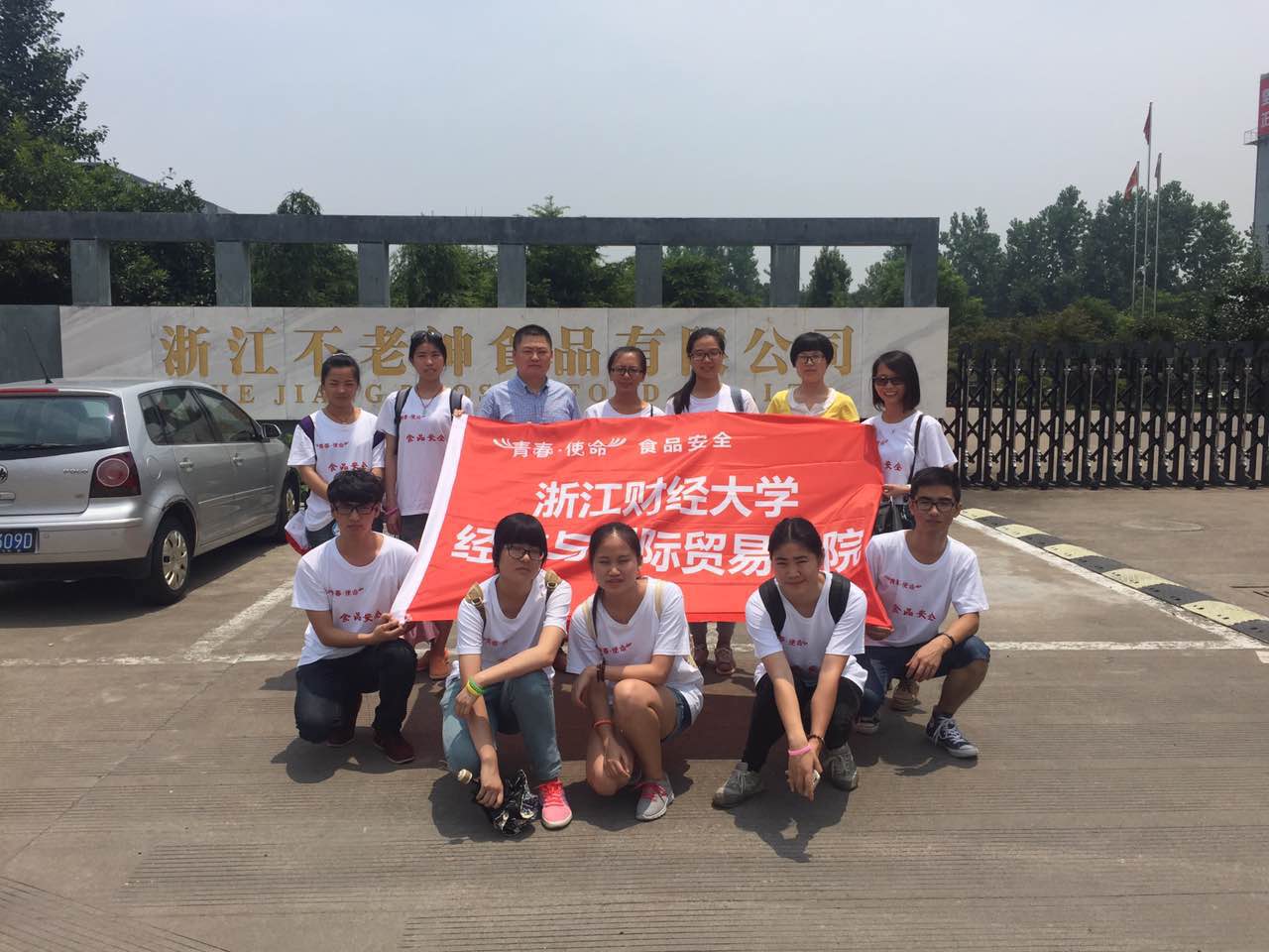实践队的第一站来到了位于曙光路的衢州市知名企业不老神食品有限公司,同学们与公司党委叶副书记进行了长达2个小时的深度访谈。叶副书记从公司的发展历程与未来20年的发展规划两个角度向同学们介绍了不老神食品有限公司的概况。其中,同学们就不老神食品的原材料来源、监管及销售流程等问题进行了重点采访,对企业特色延长生产链有了进一步的认识,了解到不老神企业旨在树立“膳食专家”的企业形象这一战略目标。随后,实践队一行参观了“不老神鸡”的生产包装车间,规范的操作流程和严格的清洁卫生制度体现了不老神企业作为中国驰名商标的社会责任感和较高的食品安全意识,使同学们对相关企业的食品安全状况有了初步的了解,为未来实践队针对企业的进一步调查指明了方向。