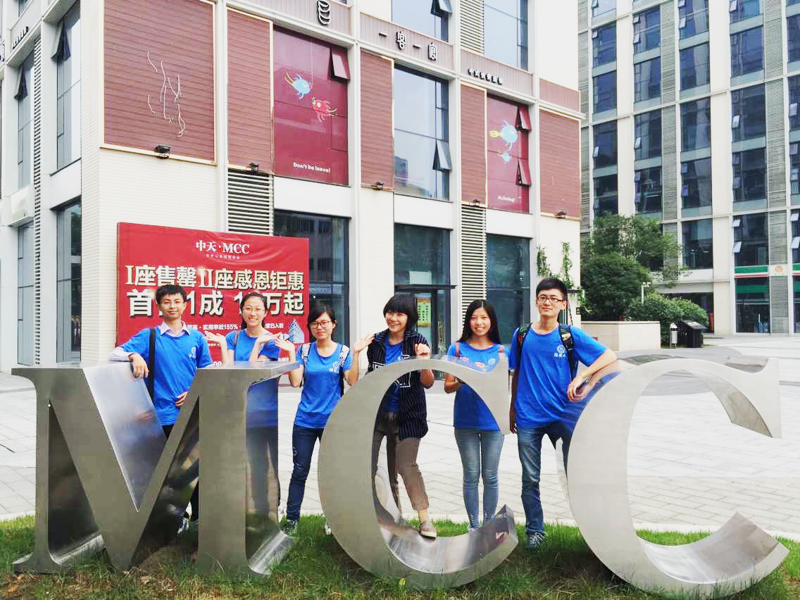 每天看着新闻媒体对台风“灿鸿”进行 报道,我们的心都悬吊着,担心强风暴雨会打乱我们的行程安排,让我们寸步难行。这一天我们似乎就是在跟台风进行赛跑。早上醒来看见窗外居然放晴了,在欣喜的同时,有一种似乎正处于台风眼中心的刺激感觉。整队集合,我们按原计划前往了老校区边的杭州会友科技进行采访交流。