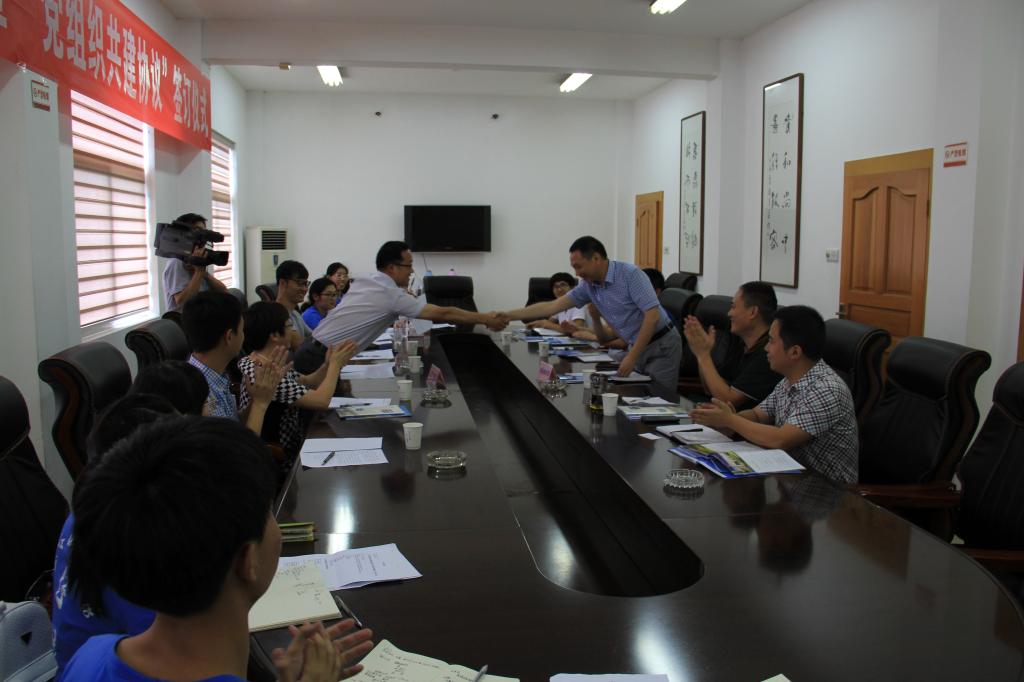 党总支书记范建锋充分肯定了基层组织合作共建的重要意义,并对未来乡村走访、企业调研、干部培训、政策咨询等多形式的共建活动寄予厚望,希望以此为契机发挥各自优势,相互学习借鉴,深入合作,实现共建共荣,共同进步。两位书记代表双方单位签署了共建协议,并举行了简单而隆重的实践单位揭牌仪式。随后与会人员互相交流了基层党建工作的经验和做法,并就下半年开展基层党组织结对共建有关工作进行了商谈,大家畅所欲言,气氛活跃,提出了许多宝贵的意见和建议。