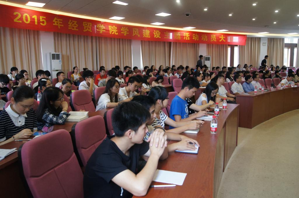 2015年学风建设主题活动动员大会暨五星级课堂启动仪式在6号楼219教室顺利举行。院党总支书记范建锋、副书记叶秀、教师代表文雁兵、黄禾雨、崔轩玮、麦正锋、刘毅群、全体辅导员、本科生代表、研究生代表共计两百余人参加了此次活动。