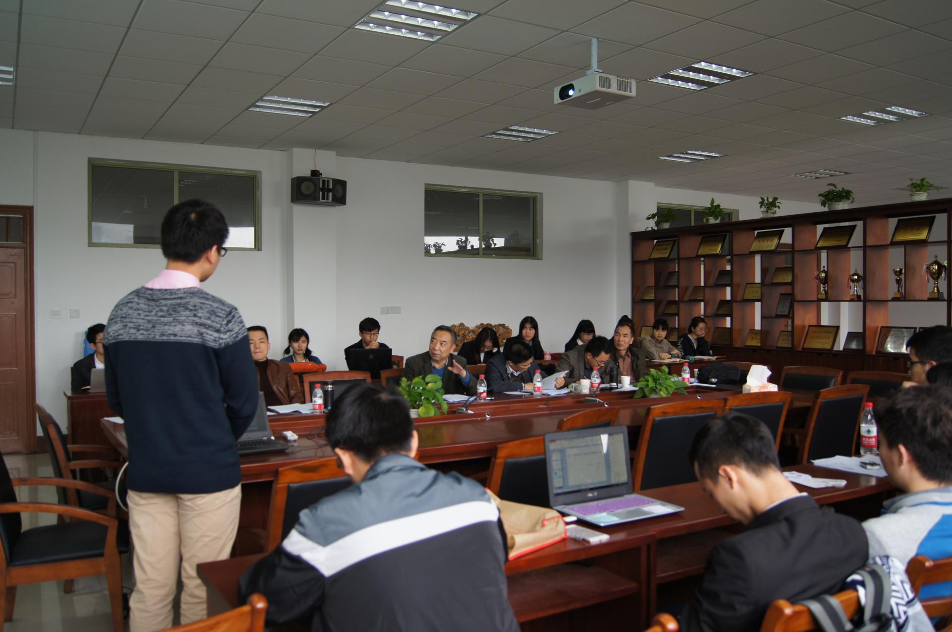 举行2016年国创项目评审会,9个项目组分别进行项目汇报,PPT展示项目框架结构、创新性、可行性等方面内容,评审老师对项目做了点评,并提出修改意见。此次评审会采用双匿名制,回避项目导师参与评审。