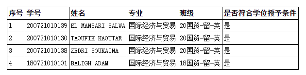 根据《浙江财经大学关于授予学士学位的工作细则》等相关规定,经2025年3月4日澳门六合彩app 学士学位评定委员会审查通过,EL MANSARI SALWA等4名2025届本科留学生符合学士学位授予条件,拟授予学士学位,现予以公示,名单如下,公示期3天。