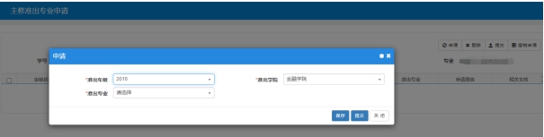 2.选择准出年级(注意:“准出年级”为毕业审核培养方案参照年级,非延长学制学生选“2019”,延长学制学生可选择招生年级或目前所在年级之间的任意年级)和主修准出专业,提交申请;若修读课程比例未达到准出专业的50%,需提交申请理由和替代说明附件,再提交申请。